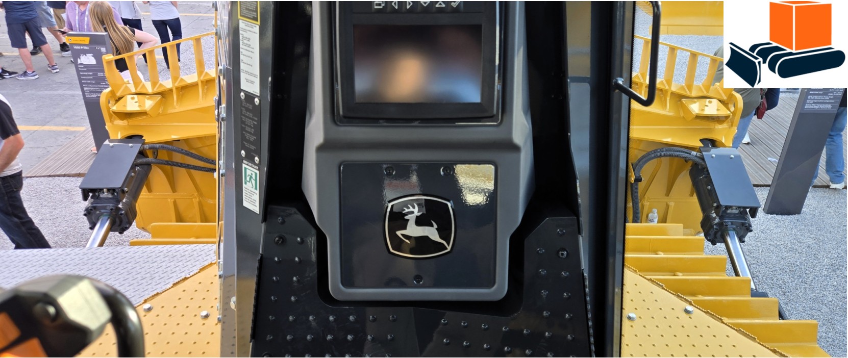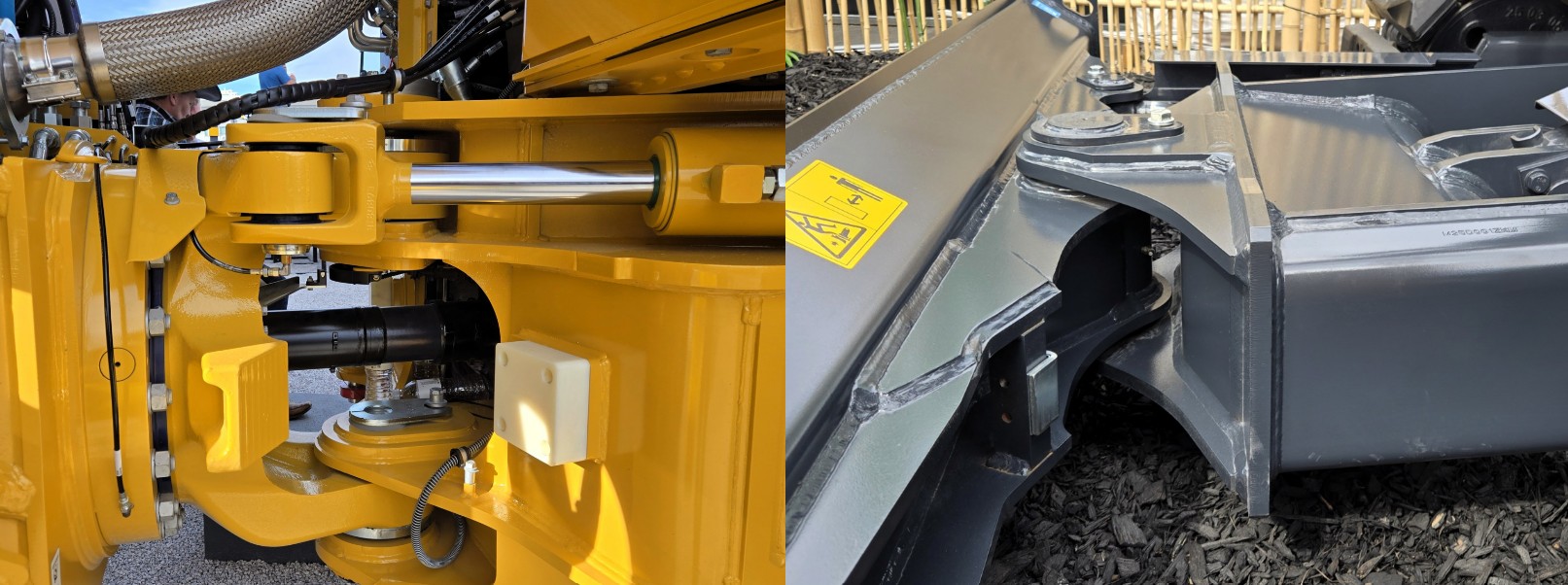 External stops on articulated dump truck (left) and mini excavator blade (right)